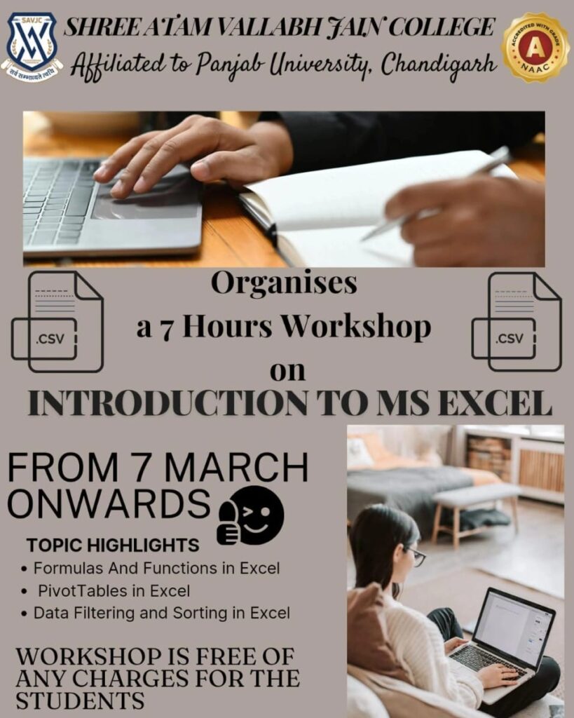 SHREE ATAM VALLABH JAIN COLLEGELUDHIANA PUNJAB Four,young students friends with smile happy emotions with raised hands up victory sign of pass exam outdoors at University. RUN FOR HEALTH 2024 4 Days education trip to jaipur (rajasthan) 6-10 jan , 2024 7 hours workshop conducted on the theme introduction to ms excel march 2024 RUKSAT 2024 : A GRAND FAREWELL TO FINAL YEAR STUDENT 5 DAYS WORKSHOP ON COMMUNICATION SKILL IN MARCH 2024 5 DAYS WORKSHOP CONDUCTED ON THE THEME BUILDING WEALTH WITH STOCKS : A BEGINNERS WORKSHOP IN MARCH 2024 one day trip to kasoli 2024 ] Student Alumni kartik sharma I THANKS TO MY PROFESOR TO GUIDE ME ALL TIME AND MY PRINCIPAL TOO DURING MY STUDY THEY CHALLENGED ME AND PUSH ME TO BE BETTER AND CREATIVE CONSTANTLY BECAUSE OF WHICH I HAVE ENOUGH CONFIDENCE TO TACKLE MY PROBLEMS